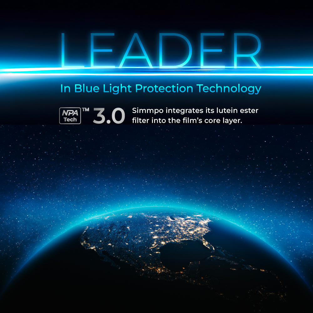 Protect your screen from both blue light and wandering eyes with the Simmpo S-90 Privacy Screen Protector. Using NPA Tech 3.0 Nano-Photon Absorption, it filters harmful blue light at 435–440 nm while maintaining vivid color and comfortable brightness.